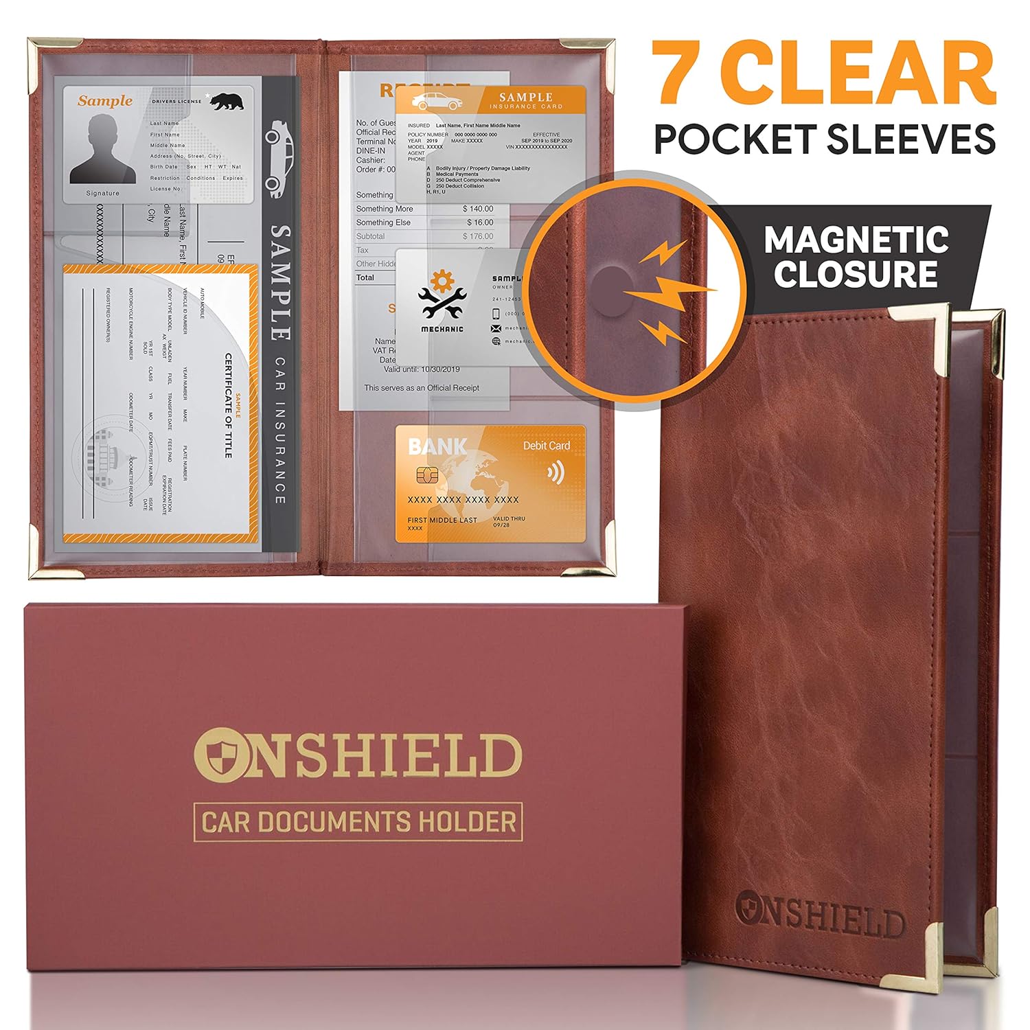 Buy miyo car registration holder for car insurance card and vehicle paperwork car document holder organizer for auto documents storage in glove box or visor flap premium pu blue leather wallet case. 46 out of 5 stars 214. Buy basenor car insurance and registration holder leather magnetic water resistant auto document wallet black.